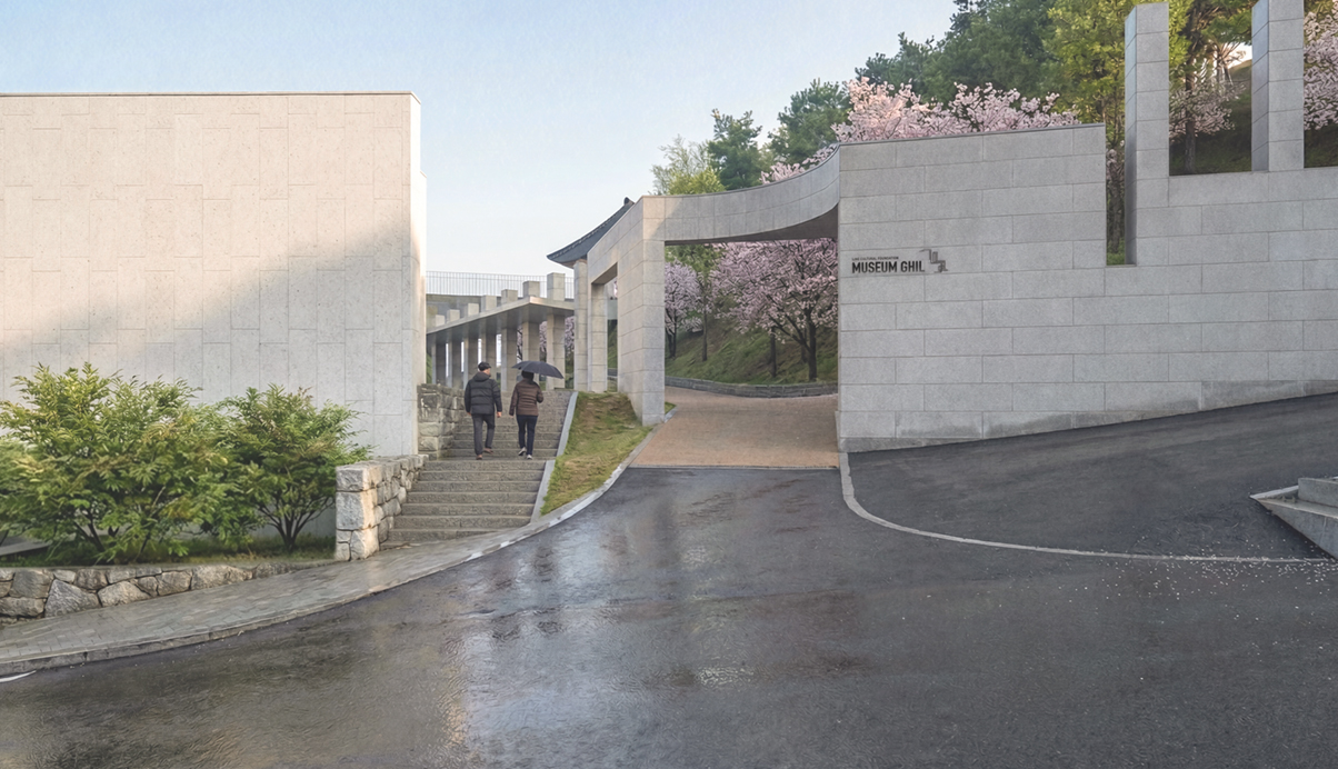 공원으로 이어지는 길은 ‘폴리(Folly)’ 라는 공간 구조물의 연속이다. 미술관의 입구에서 공원까지, 관람객은 마치 산책하듯 다양한 외부공간을 마주하게 된다. 여기서 중요한 것은 부지 하단의 코너와 저 위쪽의 공원을 잇는 새로운 길이, 그 자체로 공원의 일부가 된다는 점이다. 자연 지형을 활용한 담장, 계단, 다리, 전망대는 도구가 되어 주변의 풍경을 안으로 끌어들이는 다양한 양상의 차경을 이끌어 낸다. 사계절을 투영하는 정취, 그리고 계절이 지나간 자리에 남는 여운. 이러한 여백과 선이 비로소 공간을 채운다.