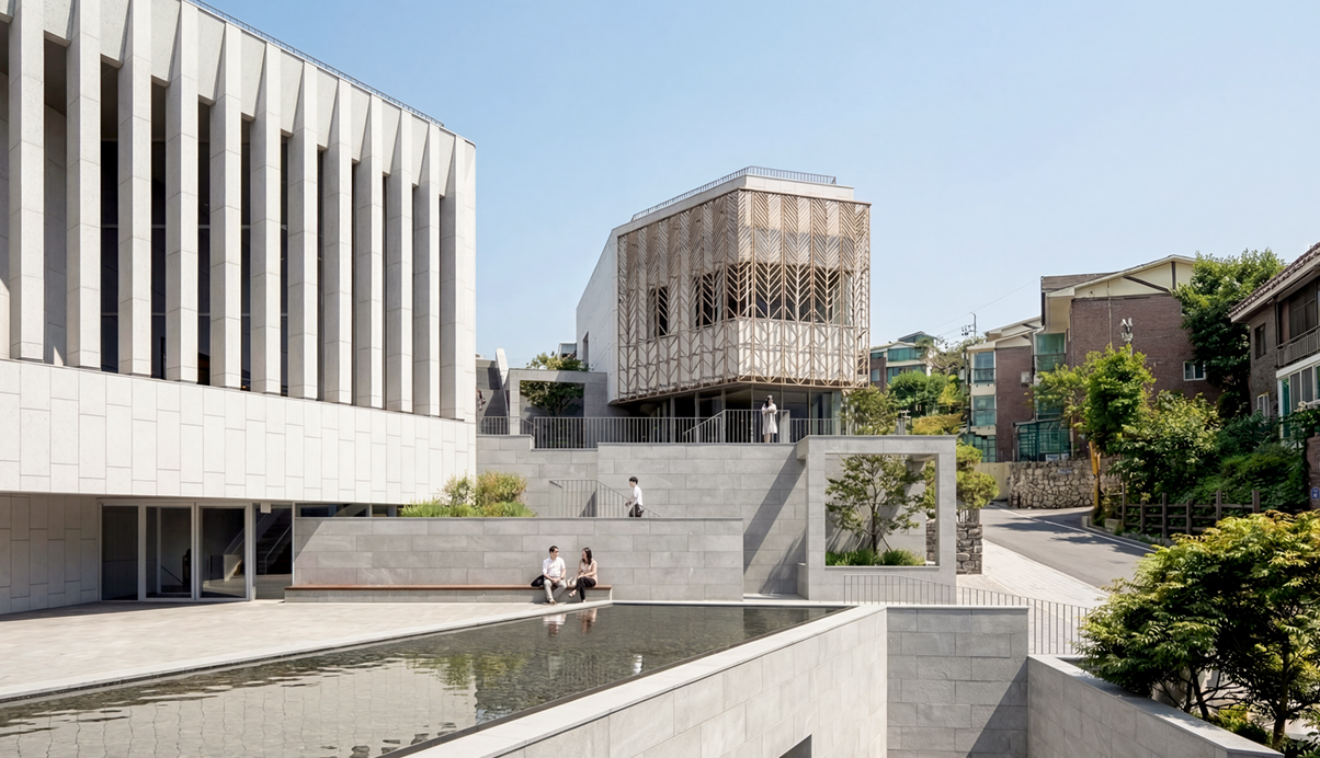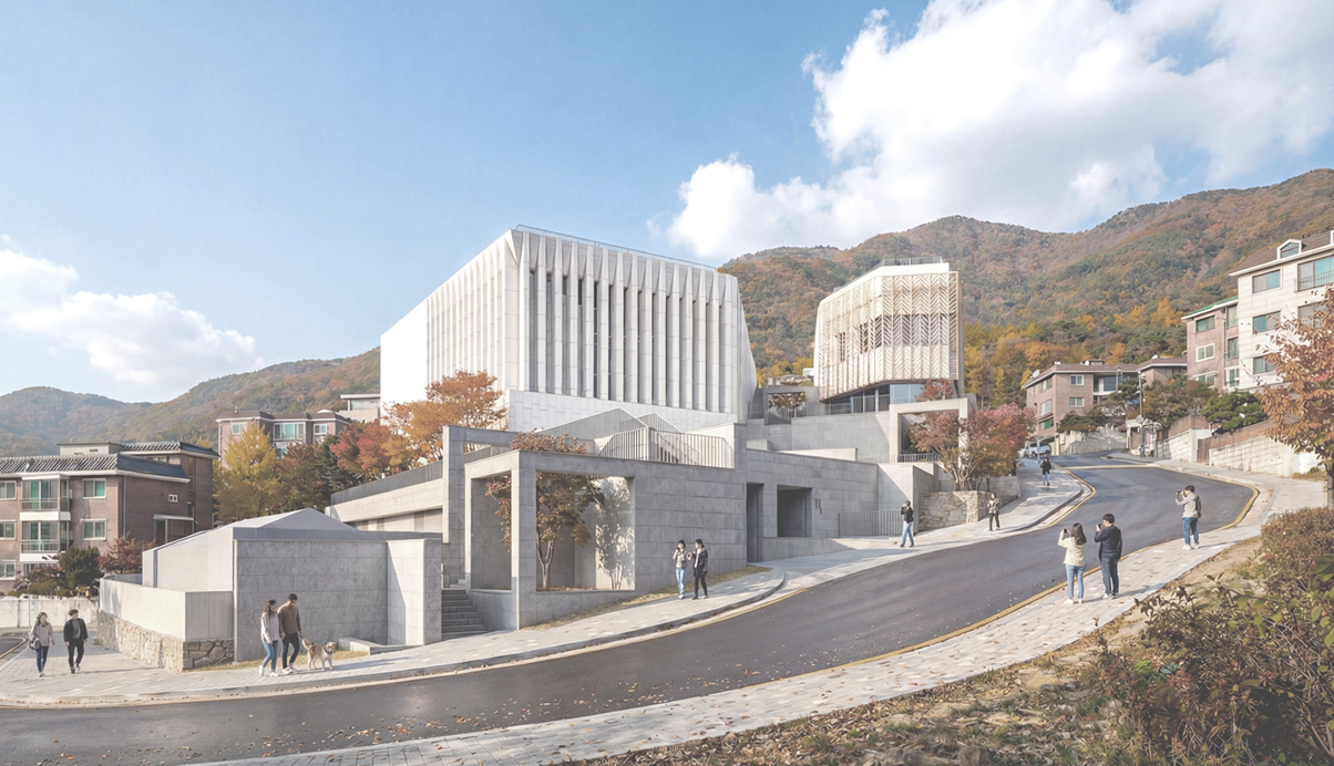 북악산 기슭에 위치한 미술관은 인접한 공원 부지와 하나로 계획되었다.