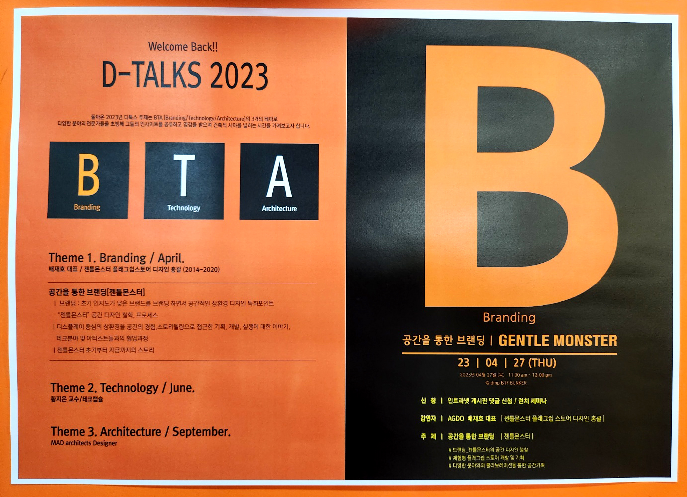 2023년 디톡스 첫번째 시간으로 배재호 대표/ 젠틀몬스터 플래그쉽스터어 디자인총괄(2014~2020)를 모시고 공간을 통한 브랜딩[젠틀몬스터]에 대한 강연을 들었습니다. 1시간 넘는 강연은 초기 인지도가 낮은 브랜드를 브랜딩하면서 공간적인 상환경 디자인 특화포인트와 "젠틀몬스터"공간디자인 철학과 프로세스, 그리고 젠틀 몬스터 초기부터 지금까지의 스토리가 담겨져 있었습니다.