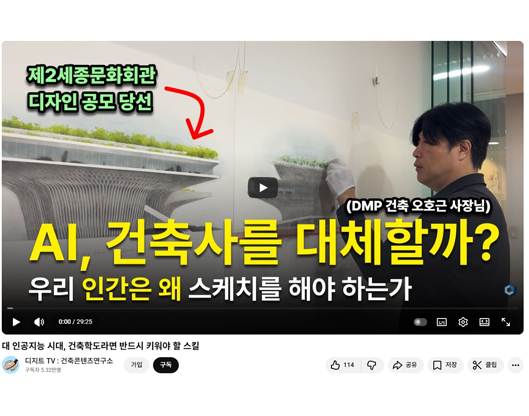 Media유튜브[디지트] 오호근 사장 인터뷰_ 대 인공지능 시대, 건축학도라면...2026.01.06유튜브 채널 '디지트(DIGIT)'에 오호근 사장님의 인터뷰 영상이 업로드되었습니다.