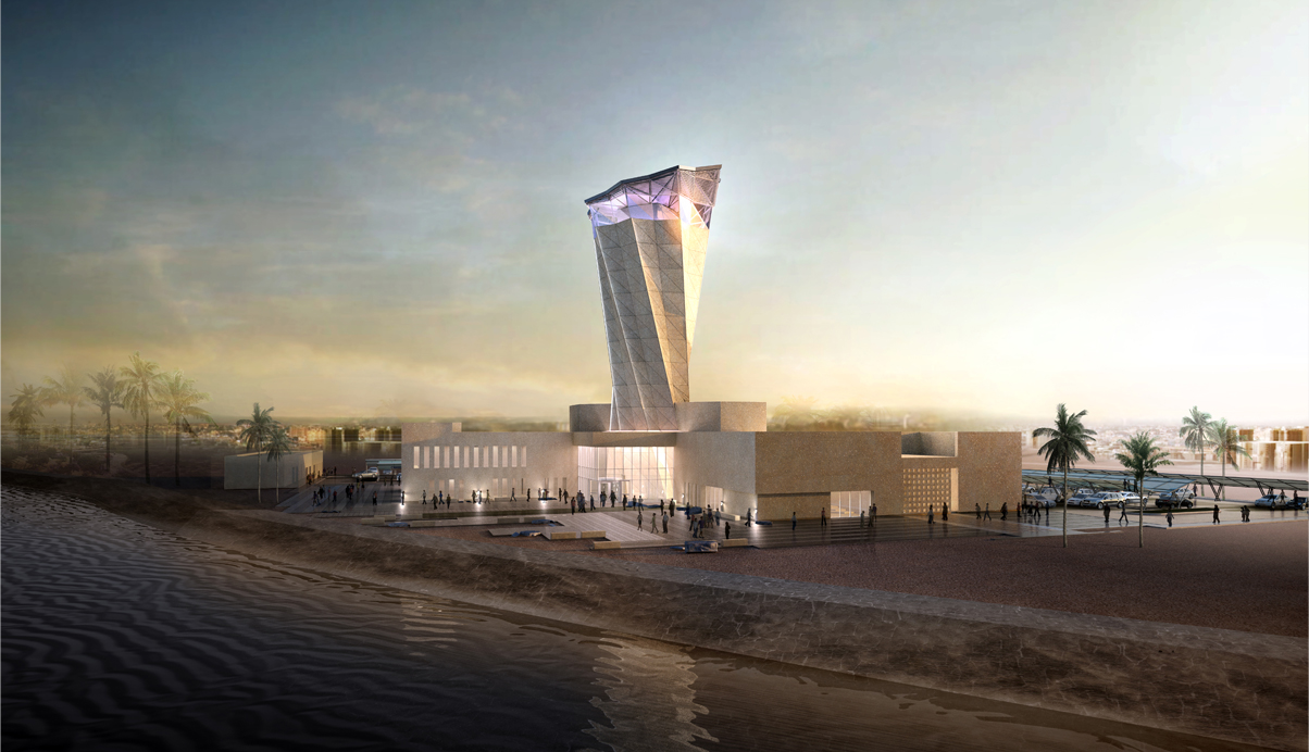 The Sheikh Jaber Al-Ahmad Al-Sabah Causeway Project connects Kuwait City to Subiyah New Town Development, across Kuwait Bay. The Visitors Centre will provide a gateway for the tourists and a place for the vista.The site is located at Shuwaikh Free Trade Zone, the west of Kuwait City. The project will be erected on reclaimed land along the new shore line. Inspired by new development in Subiyah area, the project is intended to make the site as a symbolic place for Kuwait’s economy and culture.The Visitor Centre is the gate for the new city. The rising starry-shaped tower embodies the direction for the bright future for Kuwaiti like the twinkling Polaris constellation in the night sky.