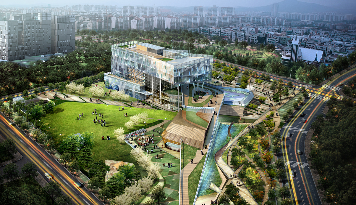 상록구는 근대화 과정에서 활발한 산업활동으로 인해 국내에서 수위에 드는 오염물질 배출지역이었던 지역이다. 그동안의 꾸준한 친환경 운동과 정책으로 이제는 다른 도시에 비해 높은 녹지율을 가지게 되어 '상록'의 이름과 어울리는 도시가 되었다. 구청의 넓은 부지 역시 주위에 많은 녹지와 공원에 둘러쌓여 있는 좋은 환경을 가지고 있고, 우리는 새로운 구청에 대한 제안을 건물로 이해하기 보다는 넓은 공원에 나무한그루 더 심는다는 마음으로 접근했다. 또한 프로젝트는 구청의 간단한 프로그램만 가지고 있지만 인군에 경찰서, 보건소, 문화원 등 많은 행정시설이 있어, 우리의 작업을 통해 이들을 하나의 복합행정시설로 묶어주는 허브의 코어가 되는 공간이 만들어 지기를 바랬다. 결과적으로 제안으로서만 역활이 끝났지만 이러한 노력은 어느정도 성과가 있었고, 그래서 더욱 아쉬움이 남는 프로젝트이다.