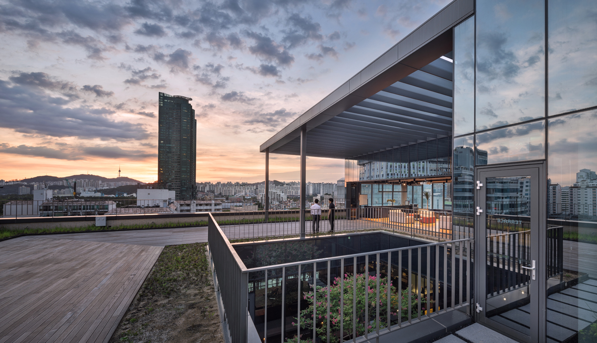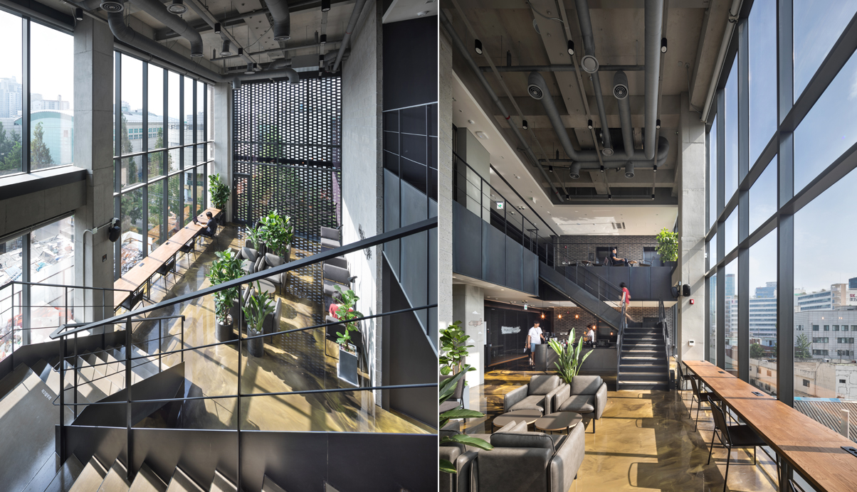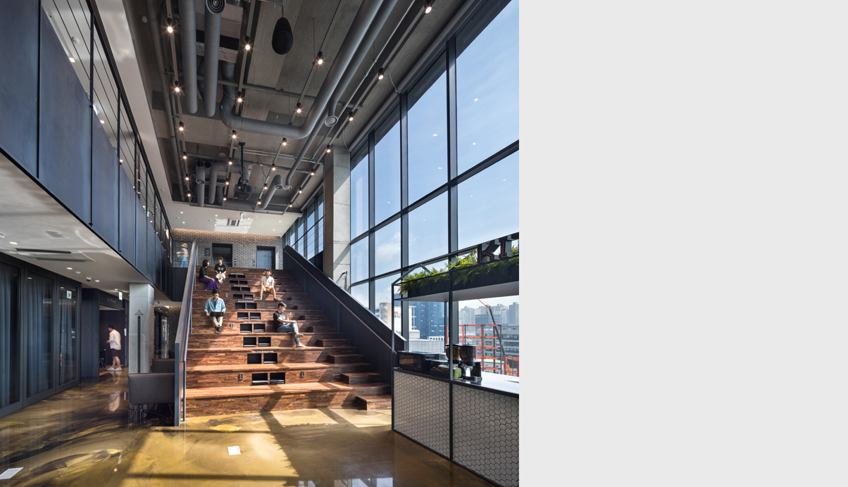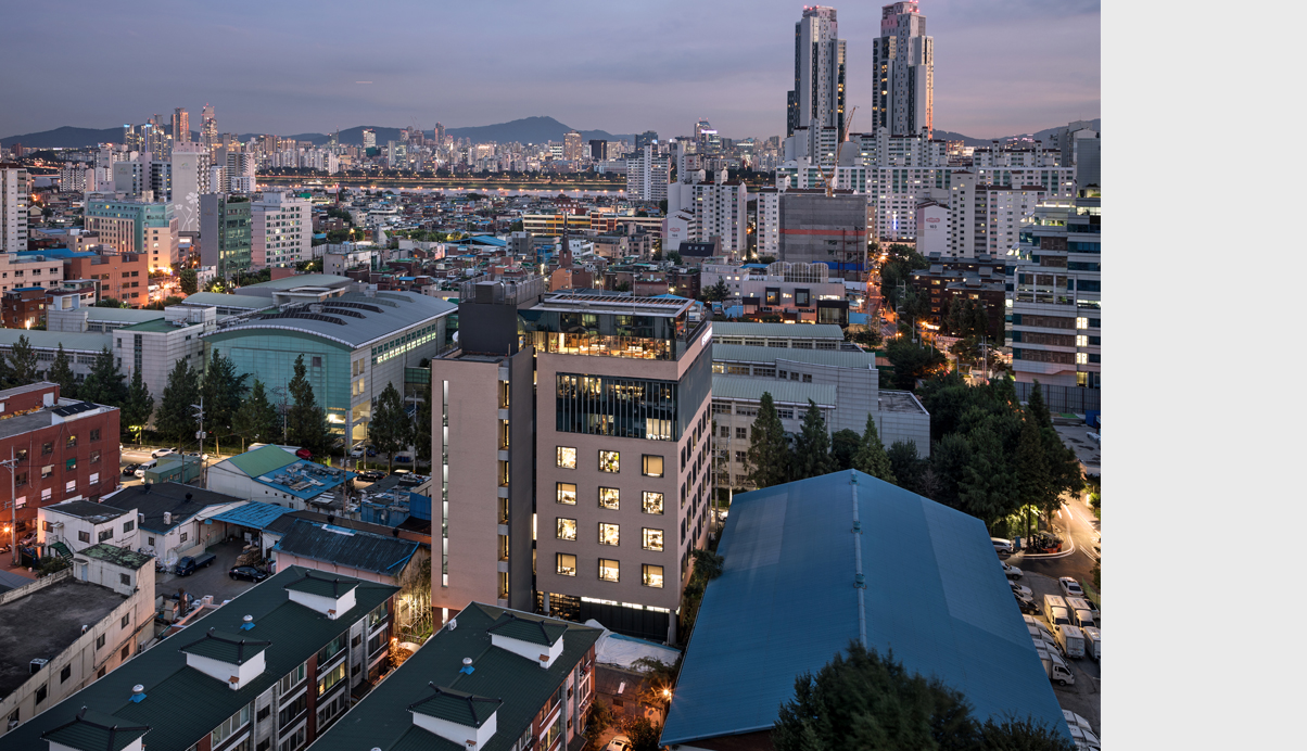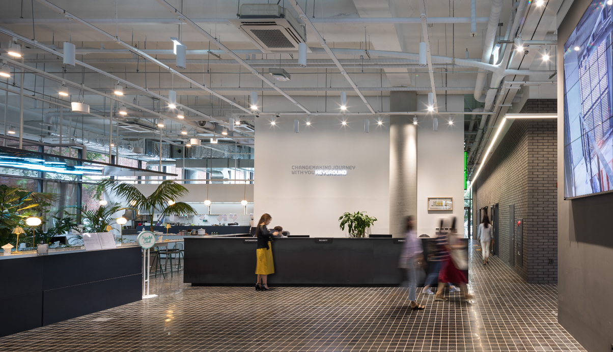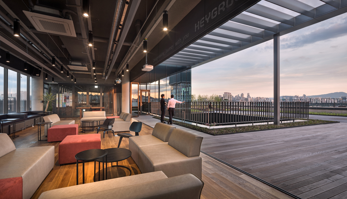 성수동은 실험적인 업무공간과 상업공간이 모여들면서 젊고 활기찬 도시적 분위기를 만들고 있다. 헤이그라운드는 이런 사회적 맥락에서 긍정적 사회변화를 이끄는 ‘체인지 메이커’들을 위해 계획된 대안 업무시설로, 프로젝트 초기부터 다수의 사용자와 함께 만들어온 성과물이다. 이 과정에서 개별적으로 넉넉한 공간을 점유하기 어려운 스타트업 기업들을 위해 공간을 다양하게 공유하도록 하는 것이 합리적인 대안으로 제시되었는데, ‘단일한 공간’에 ‘하나의 요소’로 ‘집합된 기능’을 수행할 수 있는 공간을 만드는 것이다. 이것은 조직에 따른 가변적 모듈을 가진 데스크중심의 업무영역, 정방형에 건물 중심에 위치한 업무지원 블록, 두 개층의 입주기업을 하나의 커뮤니티 단위로 묶어주는 팔러, 대규모 인원을 수용하는 루프탑과 지하 컨벤션을 통해 연속된 커뮤니티 위계로 공간을 연결한다.