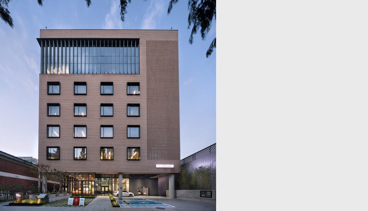 형태적인 개입이 최소화된 입방의 단순한 덩어리는, 오래된 공장들로 형성되어온 성수동의 맥락이 편하게 이어지도록 벽돌의 질감으로 마무리 되었는데, 내부 공간의 기능을 그대로 드러내며 크게 세 개의 창으로 파사드를 구성한다. 건물의 몸체를 구성하는 2~5층은 개별 기업이 입주하는 공간으로, 기업의 단위마다 하나의 창을 갖도록 하여 창의 단위들이 적층 된 공유오피스의 표정을 갖도록 했다. 상부 6, 7 층은 주로 개인적 단위의 공유 오피스로, 분절 없이 연결되어 공유되는 개방적인 창을 갖도록 했다. 두 개층을 하나로 묶어주는 세 개의 팔러는 수직으로 쌓여 개방된 큰 창으로 열리면서 내부의 활기가 그대로 밖으로 드러나도록 했다. 이렇게 다양하게 고민된 공간의 쓰임이 그대로 구축된 헤이그라운드의 가치는, 건물의 조형을 통해 억지로 드러나기 보다 실제로 공간을 활용하는 사용자들에게서 찾을 수 있게 된다.