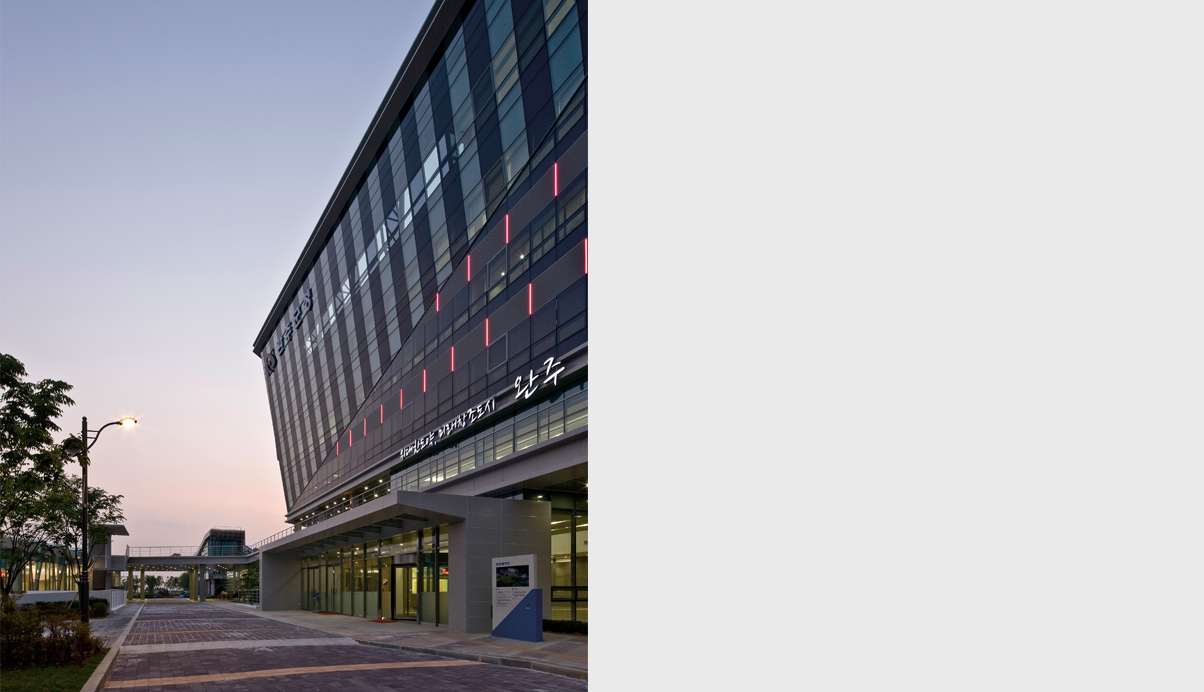 완주군청사는 행정복합도시의 중장기 발전개념을 바탕으로 미래를 준비하는 완벽한 도시 완주를 지향한다.
