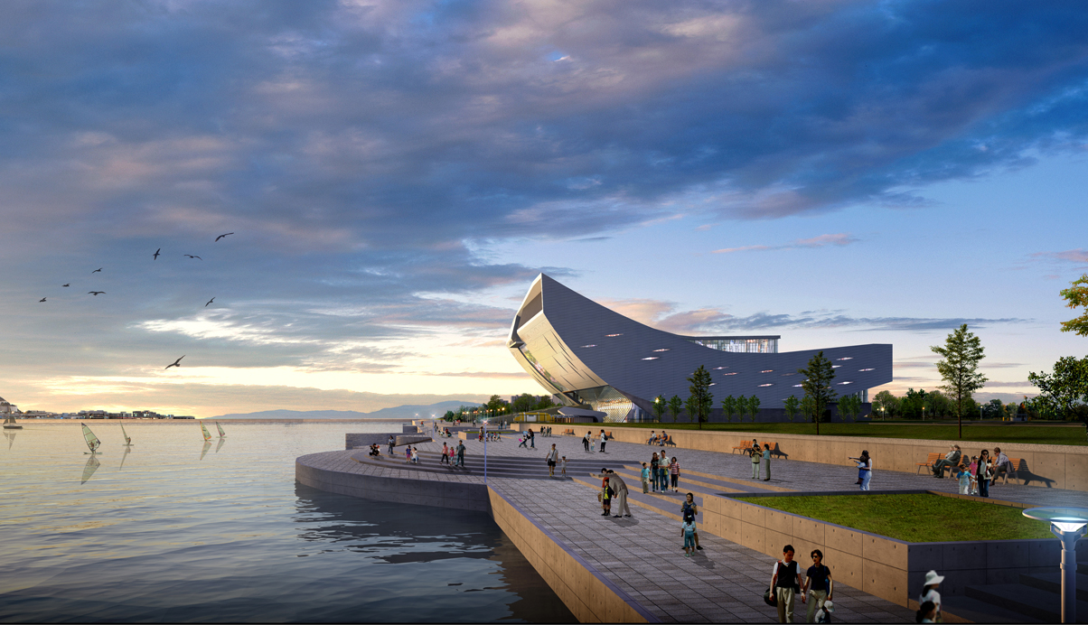 기존의 바다를 매립지로 만든 부산 동삼동 혁신도시개발예정지구에 위치해 있는 본 프로젝트는 국가적 차원의 랜드마크 확립, 유물 보전과 연구, 해양친화 및 문화교류 담당에 목적을 두고 있다. 대지의 특성상 바다에서의 인지성과 정면성을 강조하고, 기존 중심 녹지축을 확장하여 시민을 위한 풍부한 외부공간을 제공, 21세기 해양문화와 과학을 결합한 종합 해양문화센타로서의 이미지를 구현하였다. 미래의 진취적인 물결을 형상화한 역동적 랜드마크인 오션웨이브는 지구를 품은 일곱번째 대륙인 바다의 은유로서 해양문화의 가교이자 문화를 이끄는 중심, 상상 그 너머의 세계, 그리고 자연과 숨쉬는 또하나의 바다로서의 의미를 포용하는 통합적인 문화 아이콘이다.