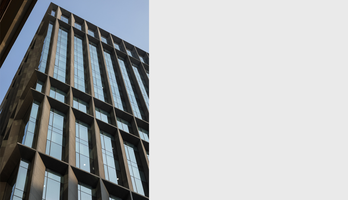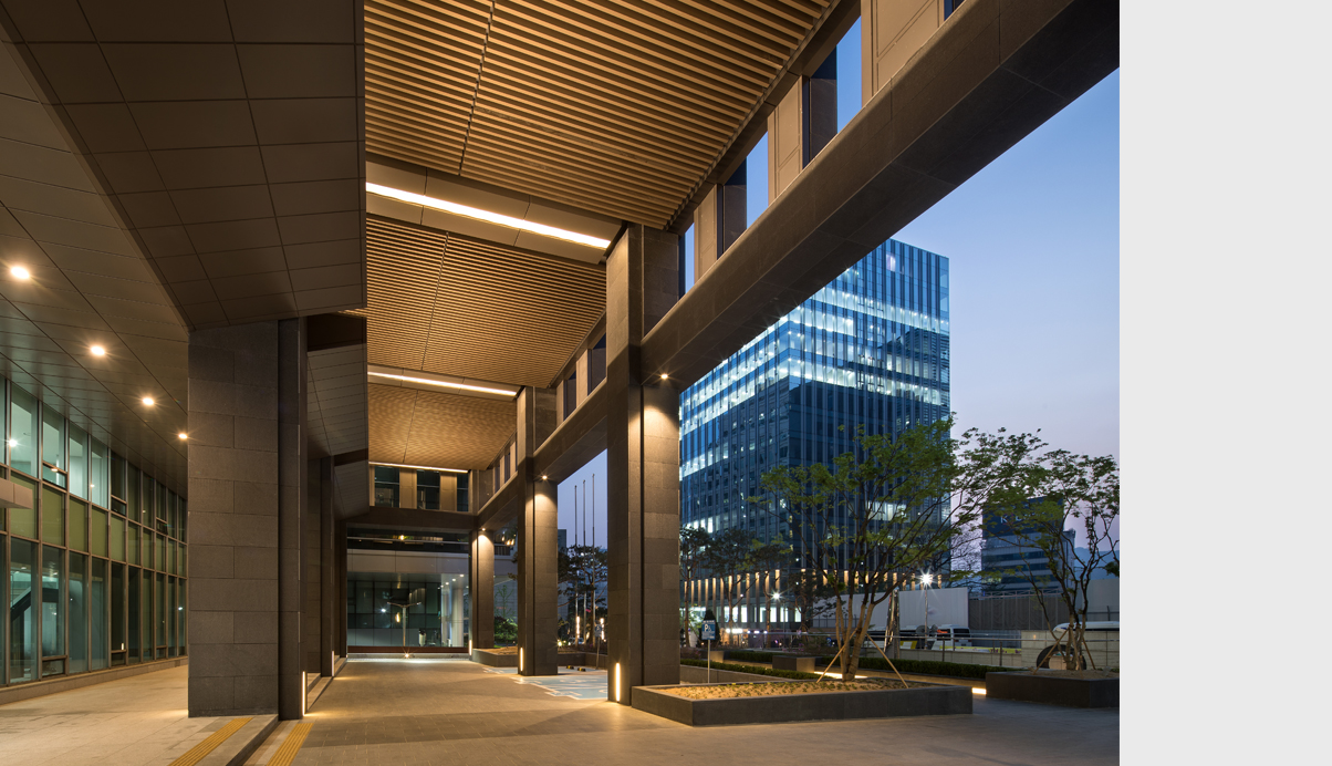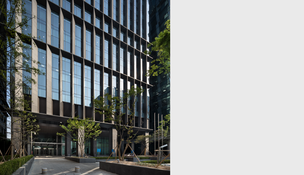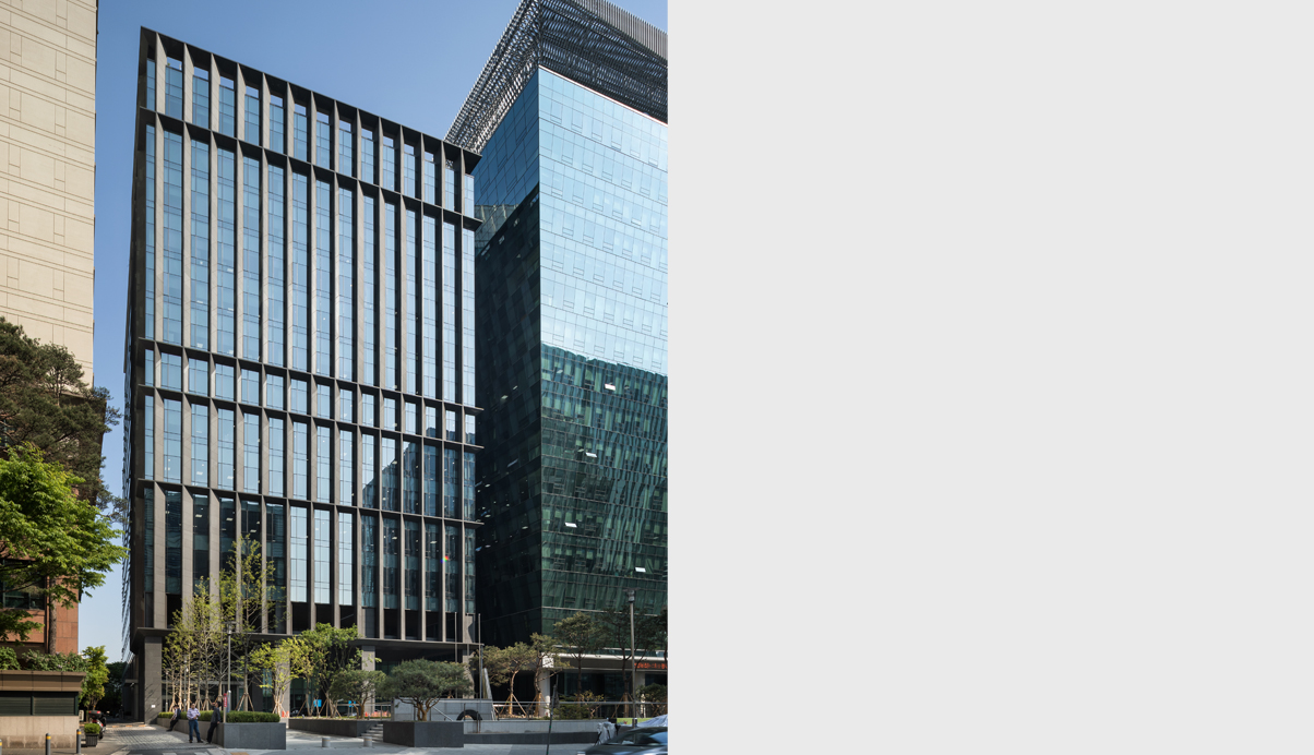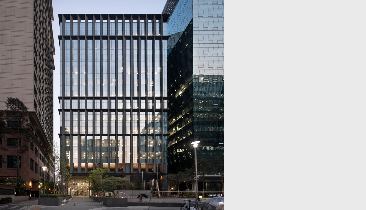 삼성생명이 15년간 사용하던 낡은 건물의 전면을 증축하면서 새로운 입면으로 도심의 새로운 얼굴로 다시 태어난 수송스퀘어는 어지럽게 혼재된 주변 도심 가로를 연속적인 맥락으로 이어주는 입면을 만들기 위해 다양한 입면 검토과정을 통해 현재의 모습으로 완성되었다. 인근 궁궐의 석축과 돌담의 묵직한 질감과 비례를 바탕으로 가볍고 날렵한 다양한 각도의 석재프레임 안에 투명하게 빛나는 유리덩어리를 집어넣은 조형이 되도록 의도하였다. 목업테스트를 통해 시공과정을 꾸준히 관리하고 시공사를 끝까지 설득하여 커튼월 벽면에 60cm만큼 돌출된 육중한 석재 날개의 복잡한 디테일을 오픈조인트와 높은 퀄리티로 완성하도록 최선의 수고와 노력을 함께 기울였다. 특히 외벽의 화강석은 Water-Jet마감으로 무광으로는 가장 진한 회색의 물성을 갖는 국내 외벽 석재로는 드문 입면 사례가 될 것이다. 입면 디자인에 대한 고집과 노력이 결국은 국제적인 투자사를 통해 미래적 가치를 인정받아 엄청난 가격에 매입되는 놀라운 성과를 거두었고, 디자인이 경제적 가치 또한 끌어올리는 중요한 도구인 것을 다시 한번 깨닫는 계기가 되었다. 수송스퀘어는 건물 앞 소녀상의 역사적 장소의 배경이 되고 있지만 오히려 아픈 역사를 잘 딛고 우뚝 성장하고 있는 대한민국의 발전을 당당히 드러내는 긍정적이고 모범적인 도시의 얼굴이 되길 기대한다.
