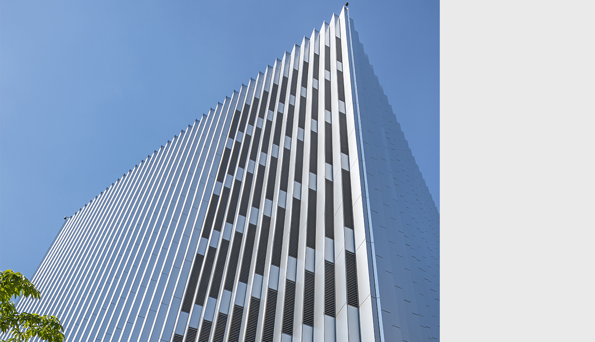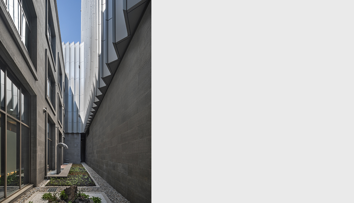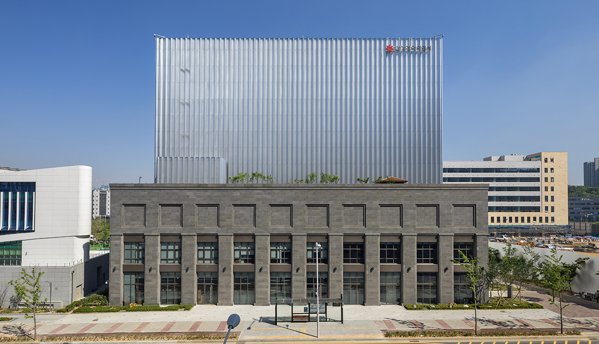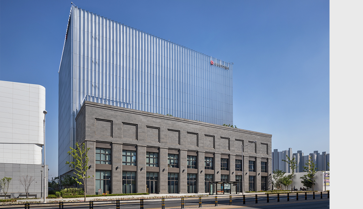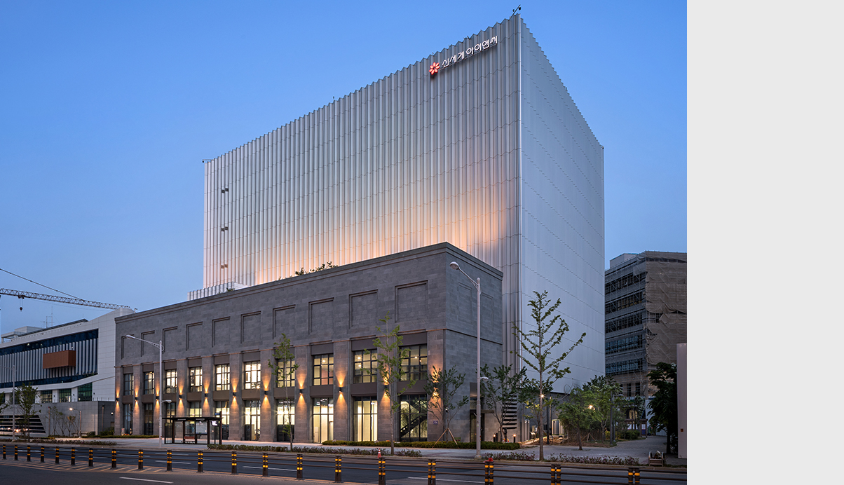 신세계그룹의 역사를 기록하는 곳으로서의 품격과 요새와 같은 반듯하고 견고한 형태로서 도심속에 새로운 경관과 상징을 만든다. 시각적인 것은 차단하면서, 내외부 공기는 순환시키는 개념을 입면에 적용해 전산동에 필요한 급배기 시스템과 데이타센타의 상징성을 동시에 고려했다. 또한 저층부에 구성된 사무동에는 업무시설과 함께 상업적 요소를 구성해 전체적인신세계 고유의 기업 아이덴티티를 완성하였다.