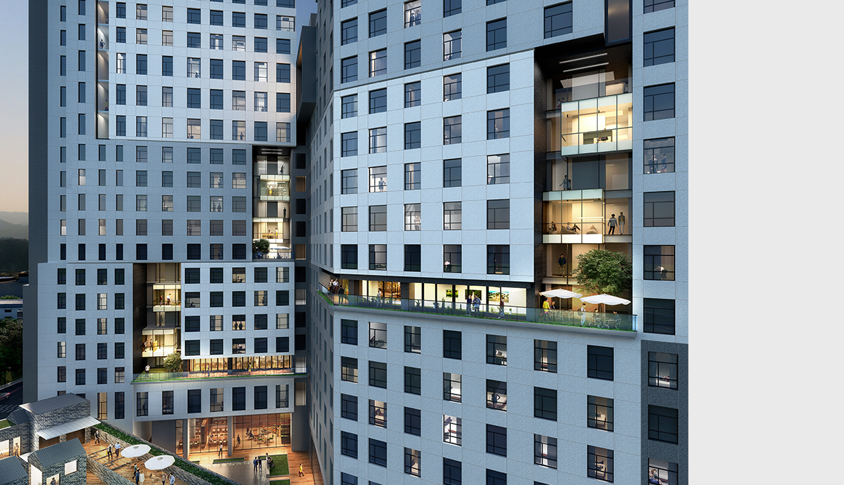 주거의 목적이 소유에서 거주로 바뀌는 현 시장 변화에 대응하여, 주거의 새로운 대안을 만들어가는 다양한 시도를 가지고 출발했다. 집으로 가는 여정에는 동네의 열린마당, 골목길 상가가 있어 단순한 일상 생활속에 의미를 더 할 수 있고, 마을의 입구와 스카이라운지, 루프탑을 계획하여, 이웃간의 커뮤니티를 도모하고자 했다.