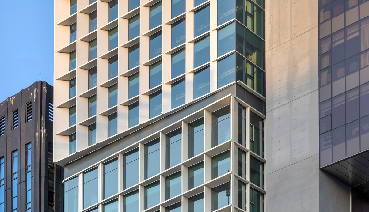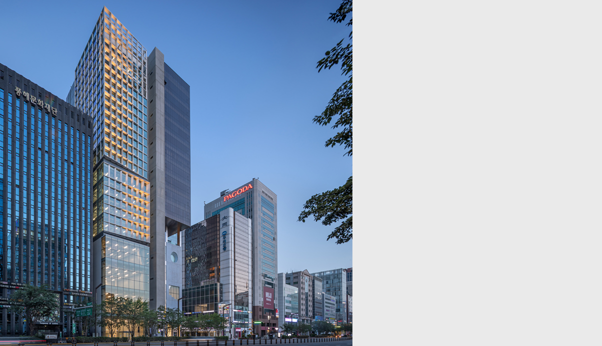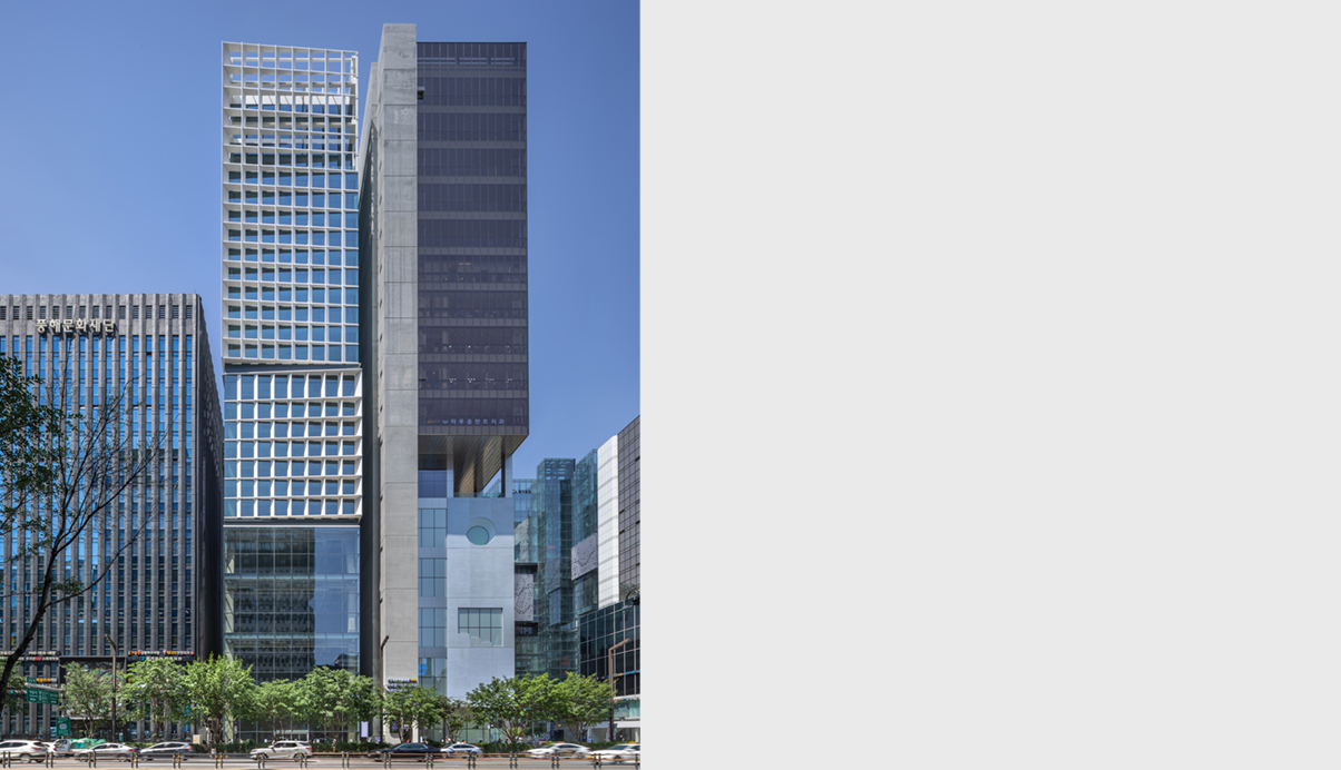 크기가 달라지는 삼각형 단면의 루버는 점점 변화하는 그림자로 테헤란로를 운전하거나 강남역 거리를 걷고 있거나 어떠한 시선에서도 고유의 표정을 드러낸다.