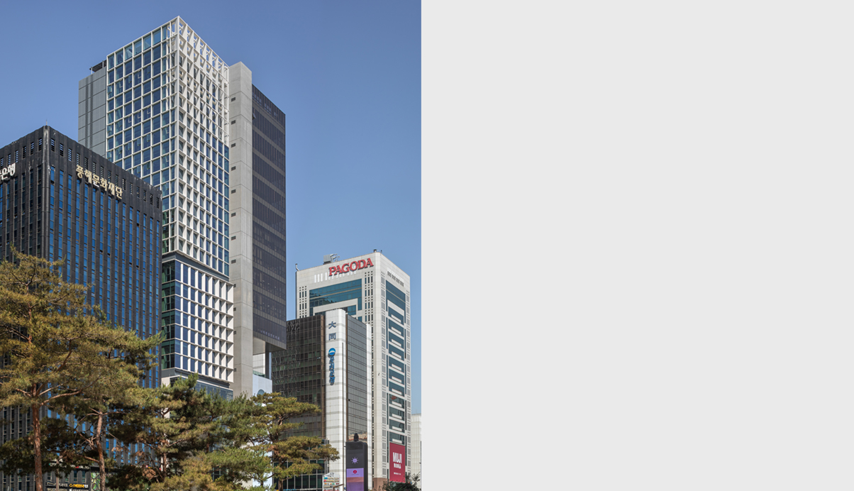 하나의 단위 공간은 대로 후면 RC조의 코어와는 독립된 철골구조로 계획되어 내부로는 최대 7미터 층고를 가지는 정방형의 무주 공간을 계획하였다. 대로와 코어 측의 단부는 캔틸레버로, 전면으로는 커튼월을 사이에 두고 온전히 강남대로를 마주하게 된다.