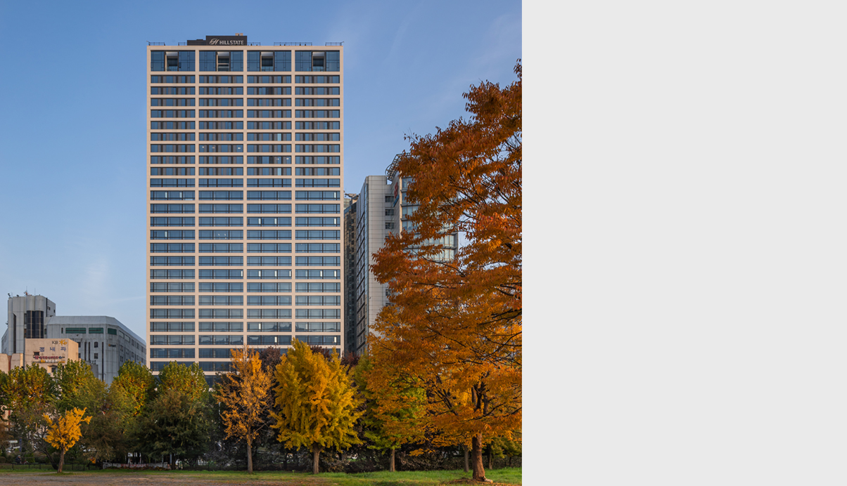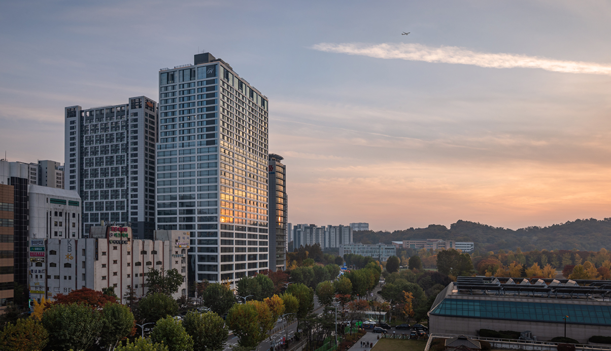 긴 시간 변함없이 자리한 과천정부청사와 한창 개발 중인 도심, 대지는 상반된 속도와 밀도를 가진 도시의 경계에 위치한다.