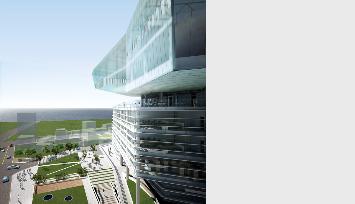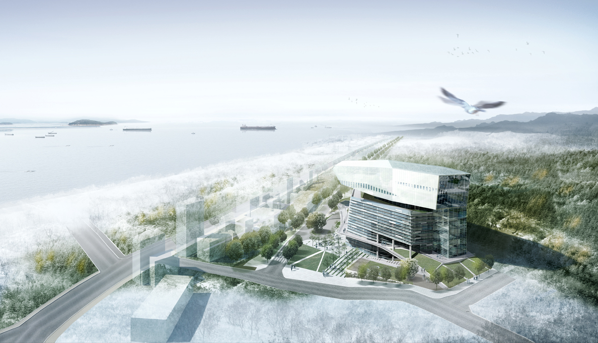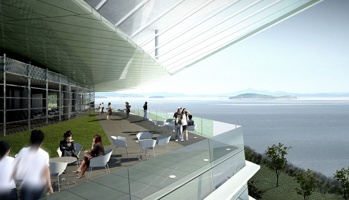 녹지와 바다의 흐름이 만나는 곳에서 등고와 물결의 형상을 가진 매스는 대지에 흔적을 새기며 새로운 지형을 만든다.Rediscovery of the Site : 대지를 열다