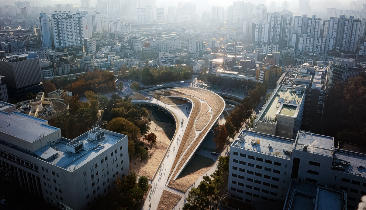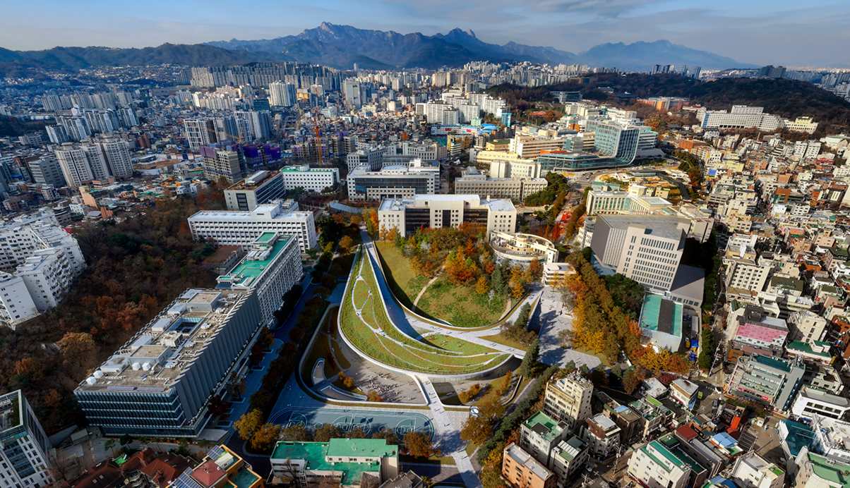 본 프로젝트는 고려대학교 120주년 기념사업의 앵커시설로서 자연계 캠퍼스 내 새로운 광장을 조성하여, 학교에 새로운 아이덴티티를 부여함과 동시에 부족한 교사 시설을 확보하고자 추진되었다. 새로운 자연계 캠퍼스 광장은 학교의 중요한 생태 자산인 애기능의 능선과 주변을 둘러싼 건물의 맥락적 통합과 수용을 고려한 형태에서 출발하였으며, 기존 캠퍼스계획의 도상학적 특징과 캠퍼스 안팎의 다양한 동선 축(Axis)이 연결되어 입체적이고 다이내믹한 풍경으로서의 상징을 제시하고자 하였다.